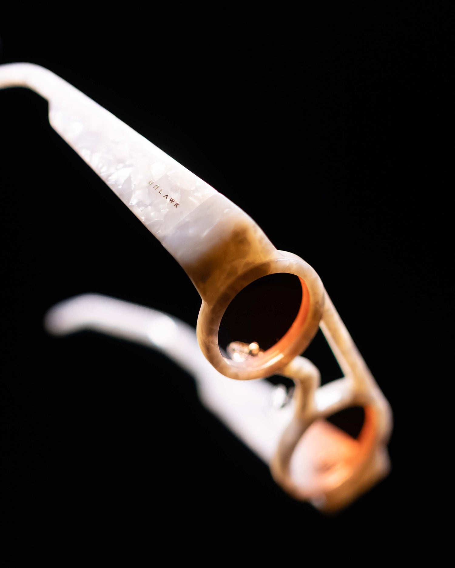 Max approaches design as a form of energetic alignment. Each pair of sunglasses tells a story — a coded frequency connected to the chakras, to movement, and to conscious rebellion. His creative process blends structure and soul, combining high-end materials with symbolic intention.