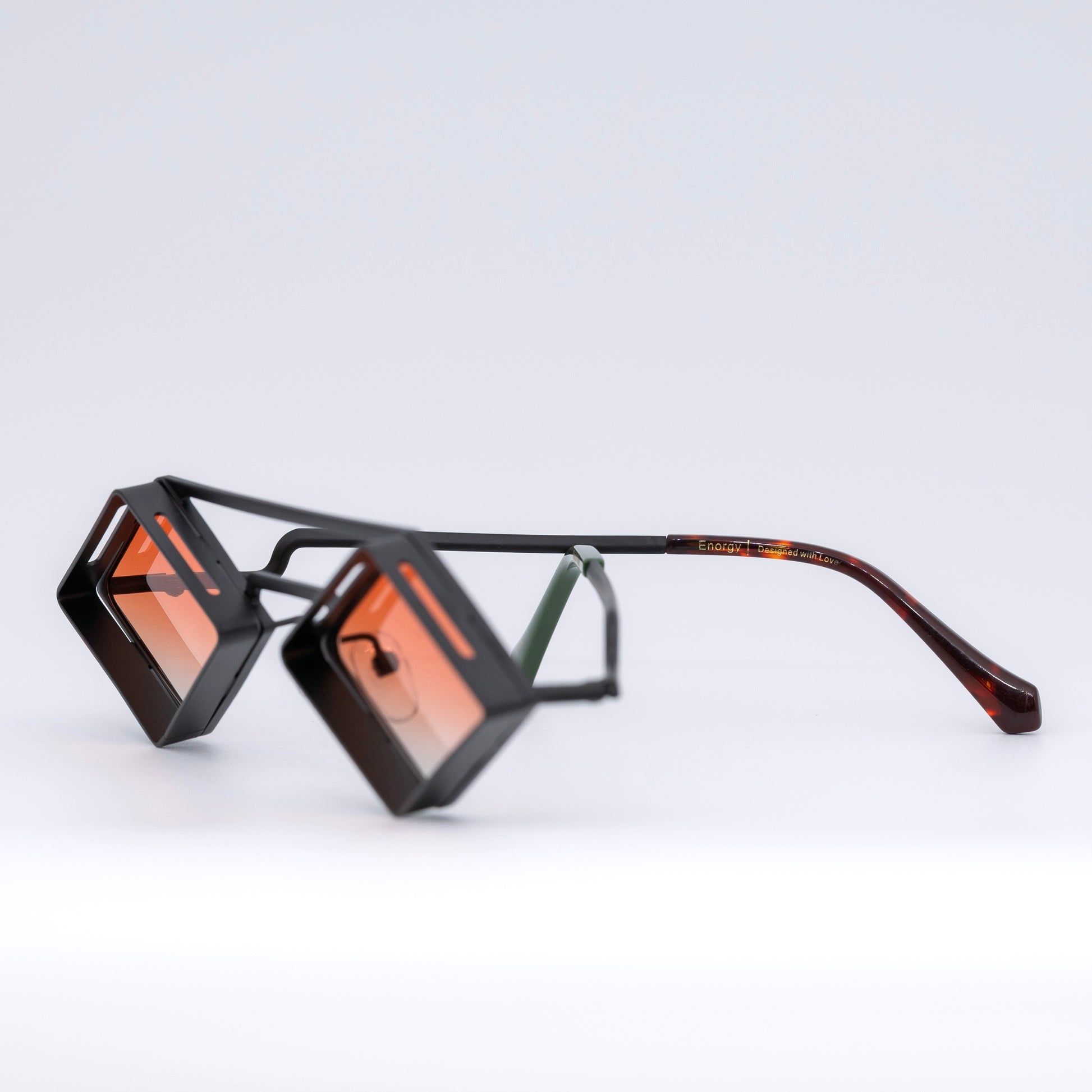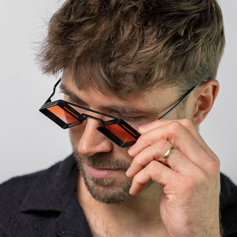 Enorgy is for the embodiment of creative fire. The contrast between the dark frame and the warm orange lens evokes restained desire, sacred sexual energy, and powerful inner creation. It doesn't just sit on your face, it pulses.