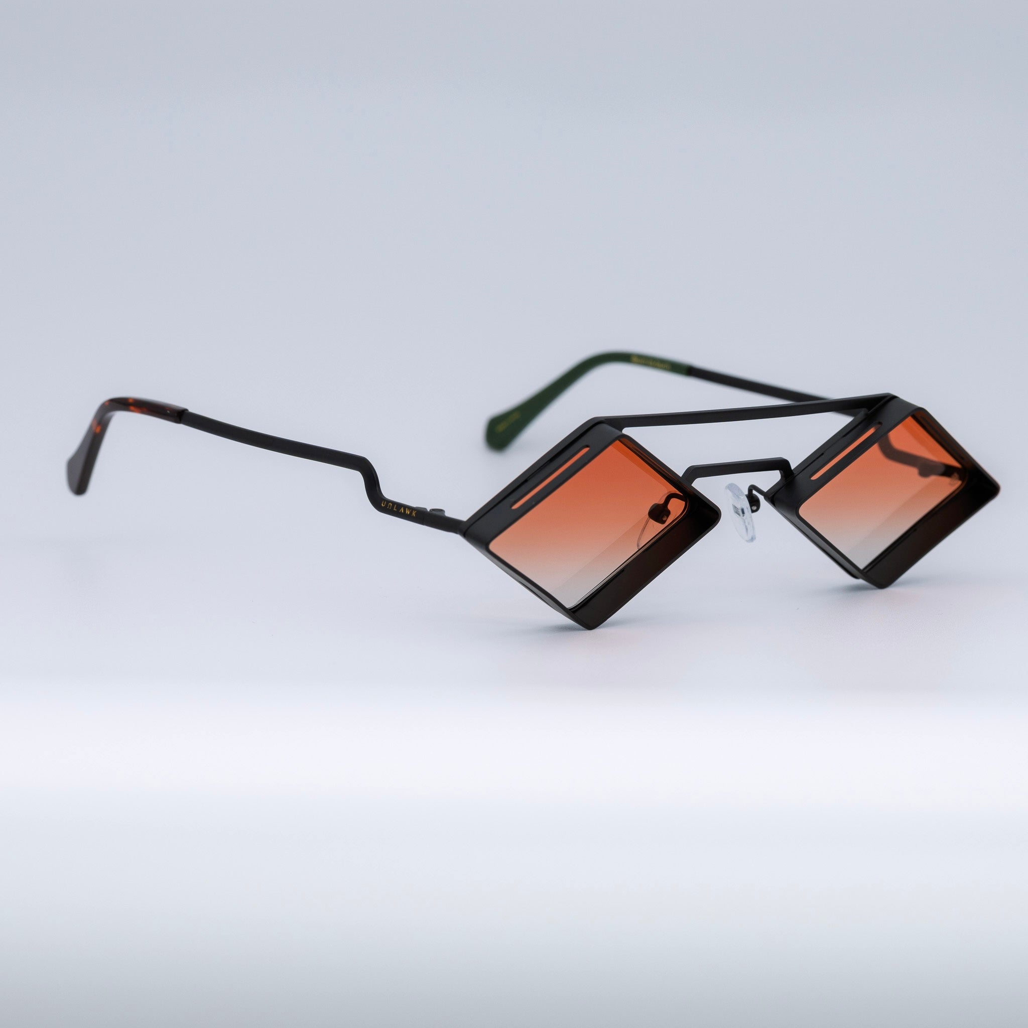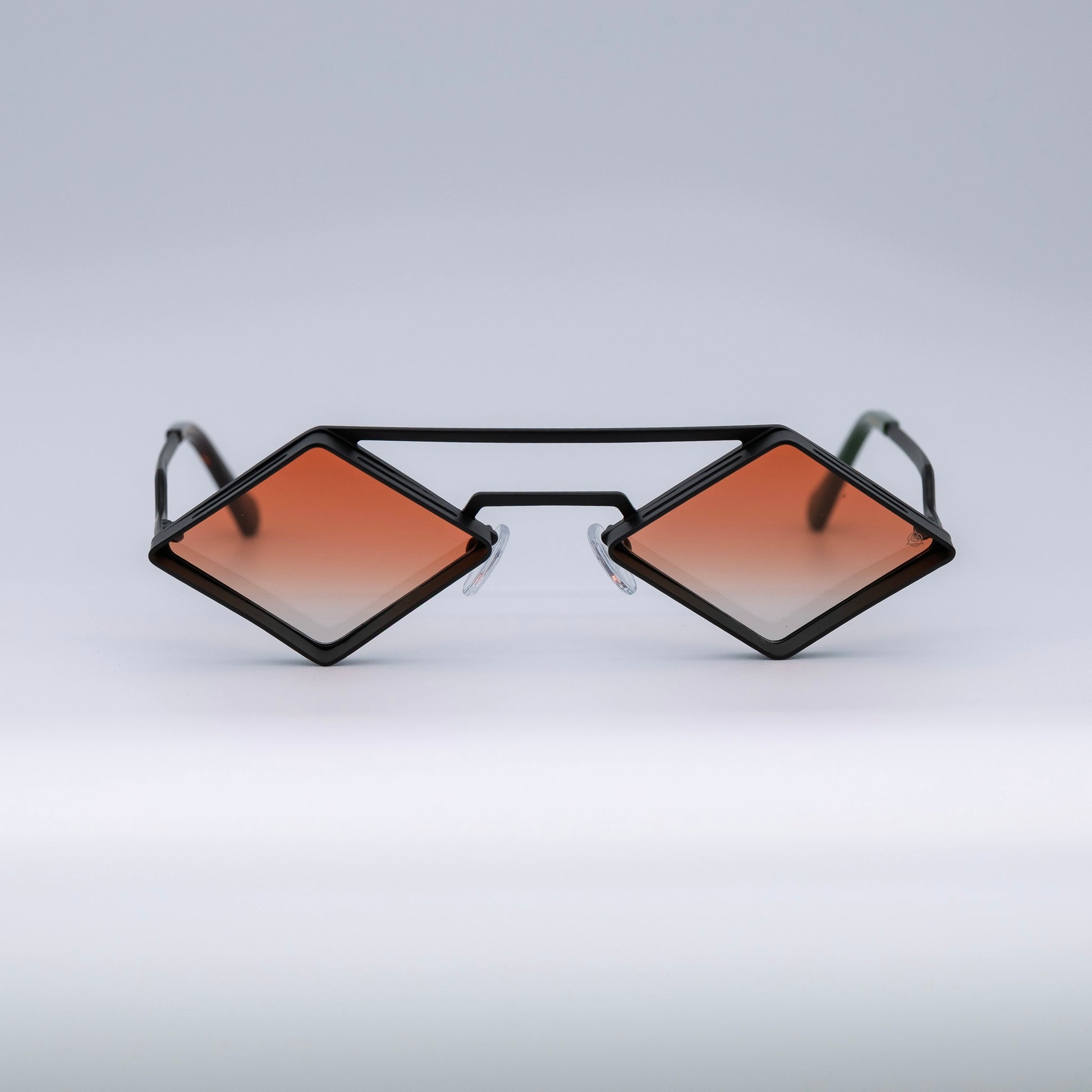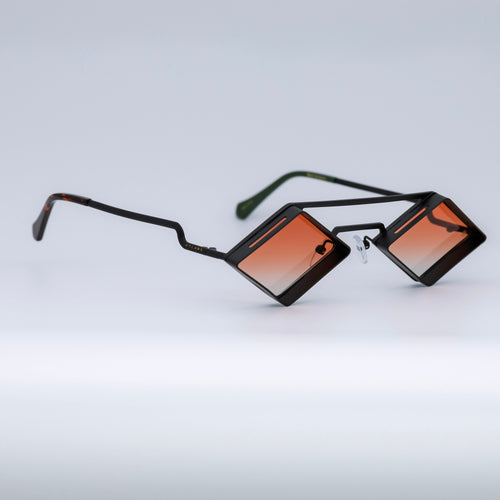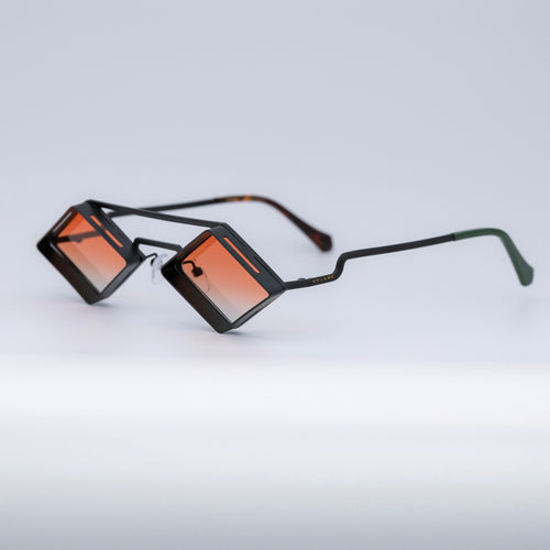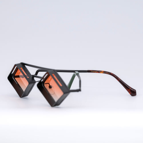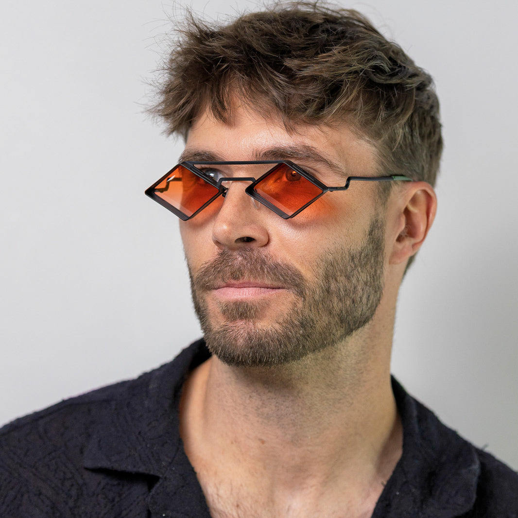 • Design: Minimalist black stainless steel frame with intense orange lenses.