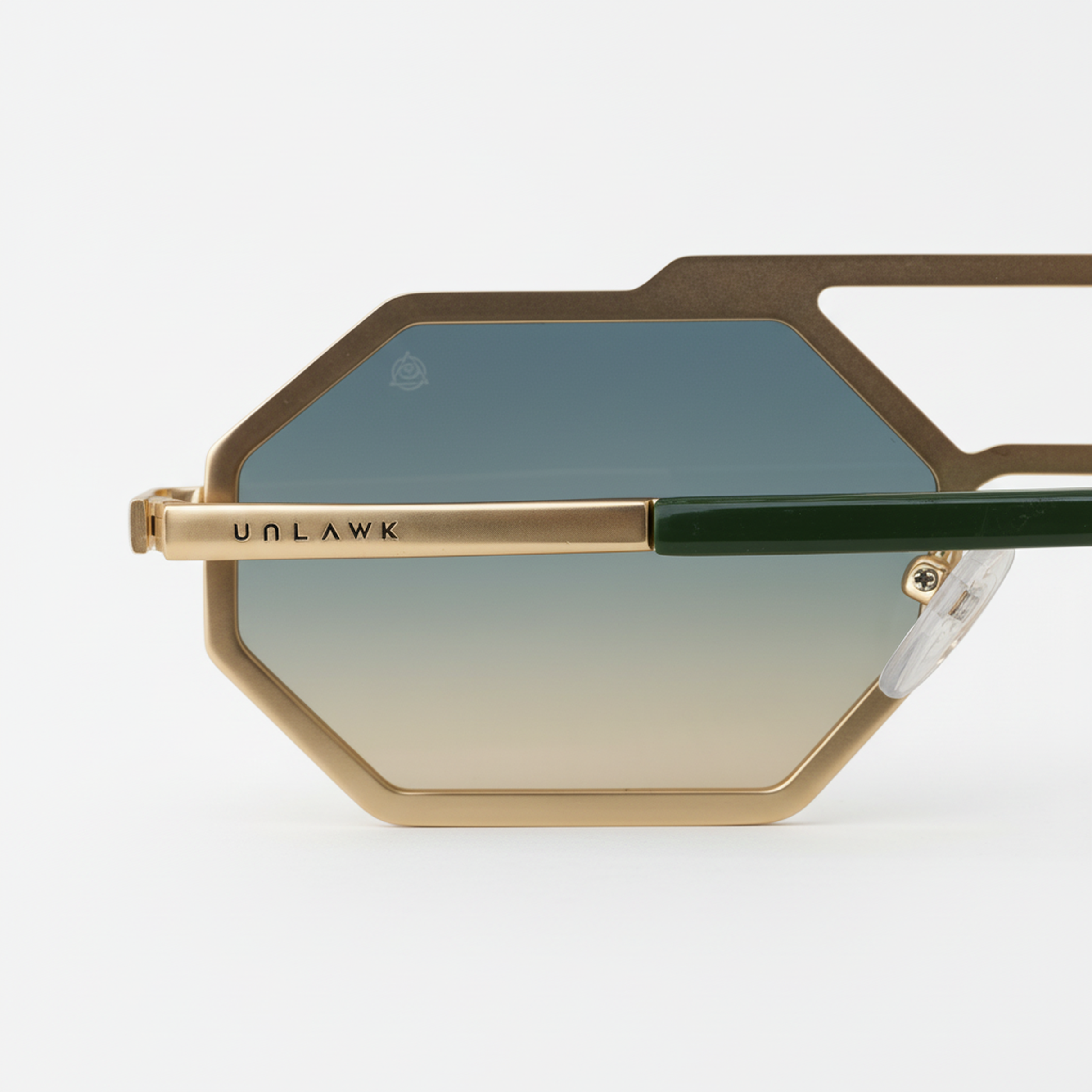 • Design: Elegant gold octagonal frame with a modern, masculine silhouette. Translucent green lenses to align with heart frequencies.