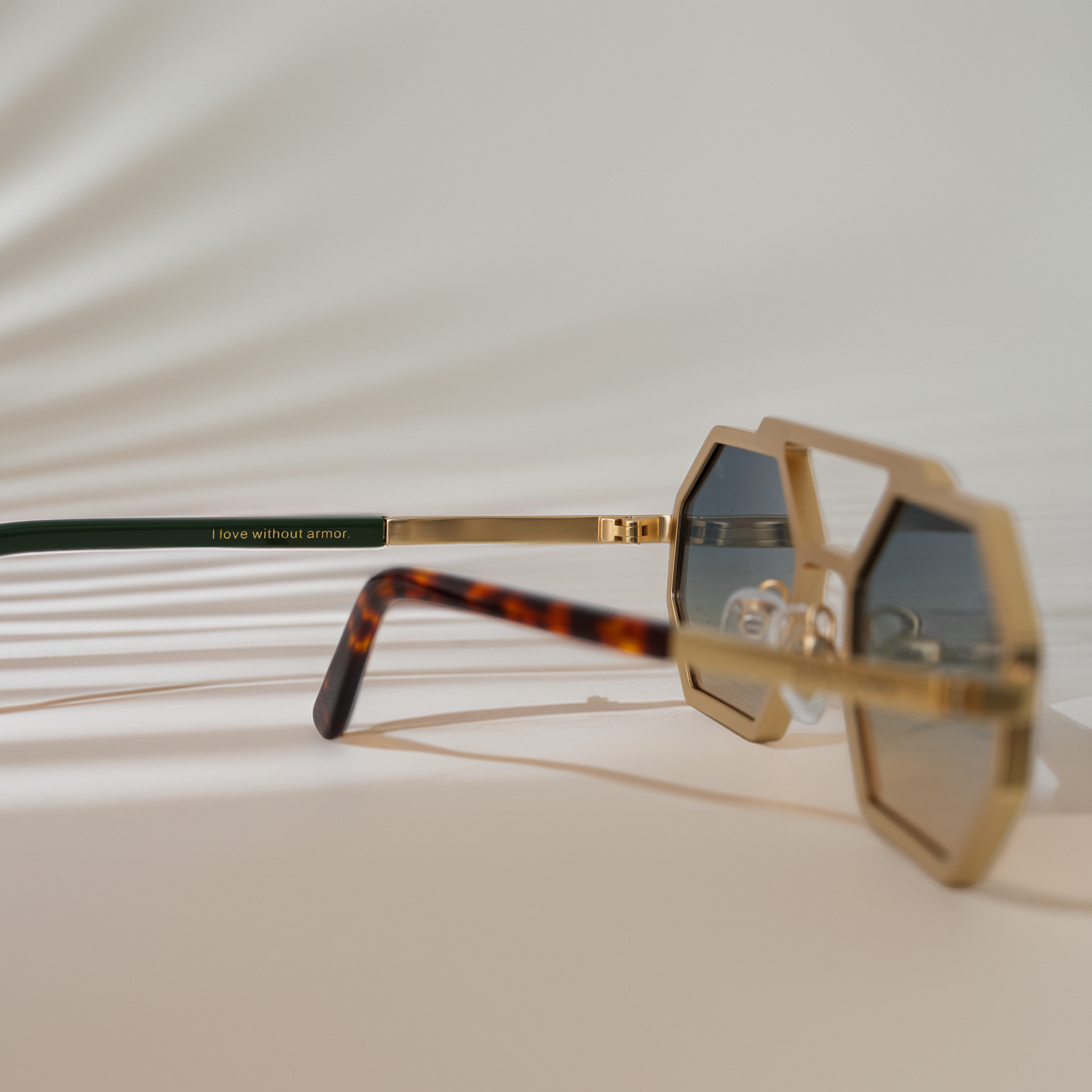 Healer isn’t just a pair of glasses — it’s a visual reminder that love is not weakness, but a weapon of light. The gold structure reflects the nobility of an open heart, one that stays aligned in storms. The green lenses symbolize healing, harmony, and the sacred balance of strength and compassion.