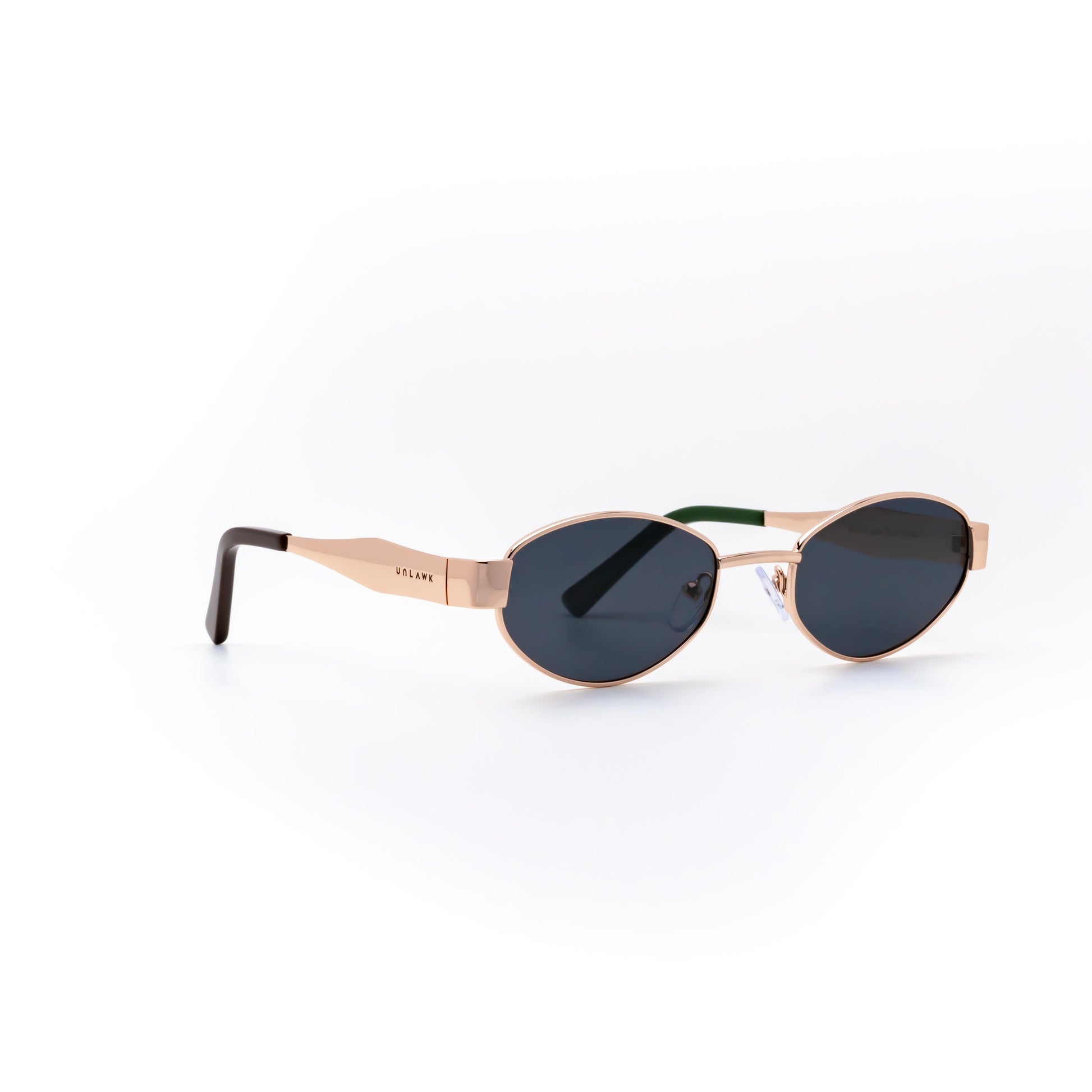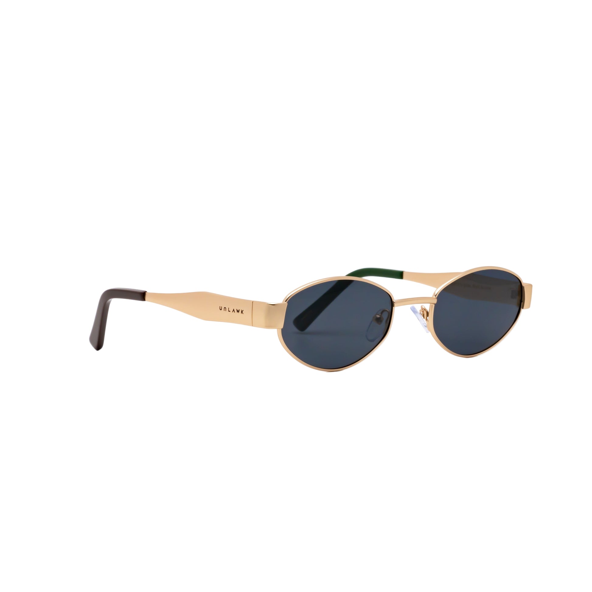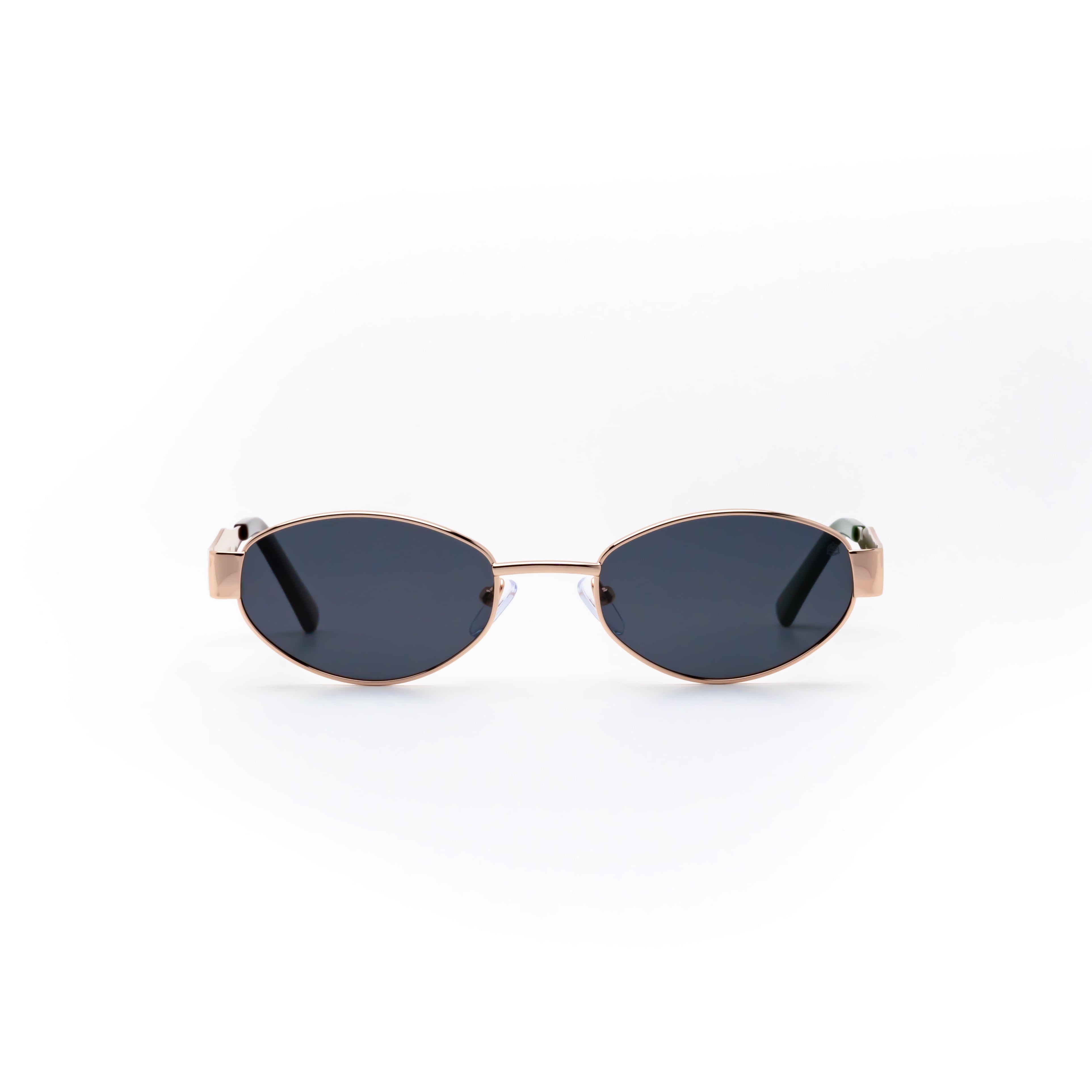 • Design: Fine gold frame with gently curved arms, elegant oval black lenses. A balance of feminine softness and steady strength.